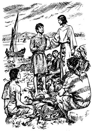 aperçurent un feu de braises sur lequel il y avait du poisson et du pain. Jésus